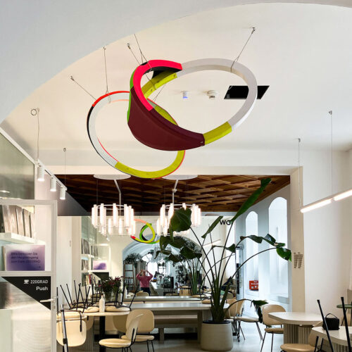 220GRAD Temporary Installation 2025 – 2028 Cafe 220Grad, Rupertinum, Museum der Moderne Salzburg „Untitled“ aus der Serie STUDS #3, 2023 Acrylfarbe,…